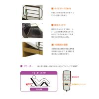 背もたれと脚のリクライニングが連動して動く1モーター。LEDライトに便利なコンセント付き。床板は高さ4段階調整可能。便利なサイドガード2本付き。機能満載の電動ベッド。