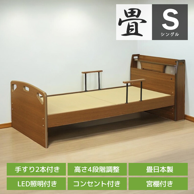 畳ベッド シングルベッド 宮付き ベッドフレーム シングル おしゃれ ライト付き コンセント付き 小引出し 手すり付き ベッド 畳ベット