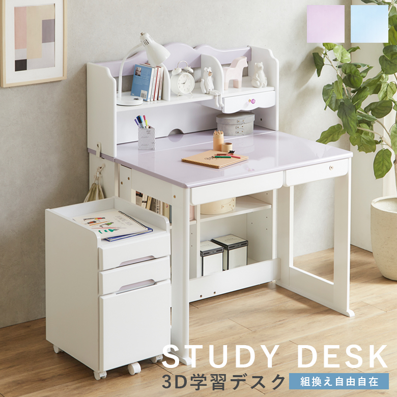 学習机 姫 セット シンプル 勉強机 子供 学習デスク 3D学習デスク おしゃれ システムデスク 学習デスクセット かわいい ワゴン付き 組替え 3D 机