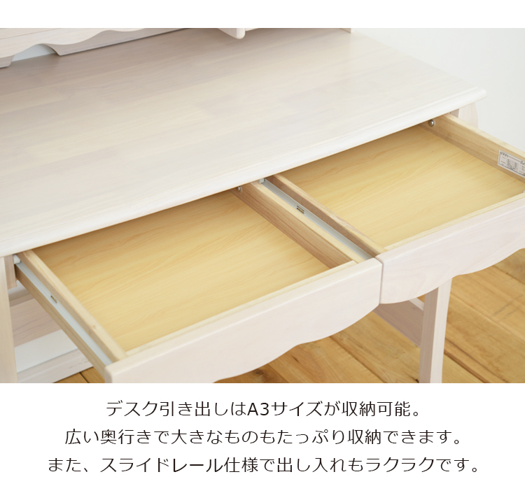 デスク引き出し内寸:幅36cmx奥行き42.5cmx高さ4.5cm
