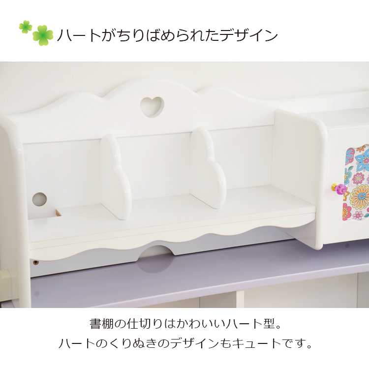 学習机 姫 セット ハート シンプル 勉強机 子供 学習デスク 3点セット かわいい おしゃれ 机 猫脚 白 鍵 ピンク パープル ホワイト 子供部屋家具