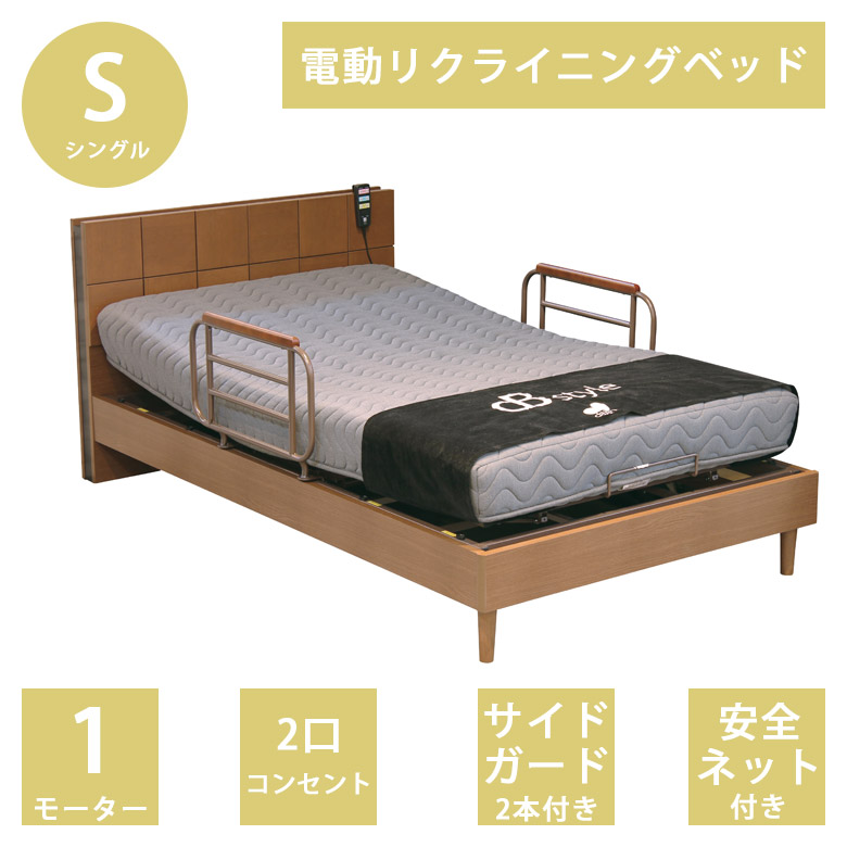 電動ベッド シングル 1モーター リクライニングベッド 電動リクライニングベッド ベッドレーム おすすめ 介護ベッド ヘッドボード 2口コンセント付き