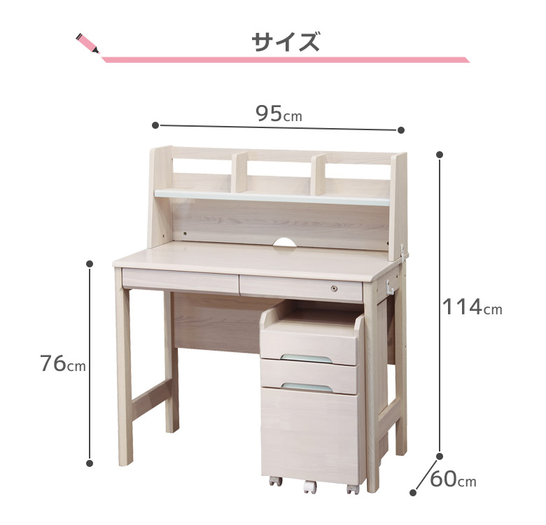 学習デスク 学習机 子供 タブレットスタンド付き 幅95cm ワゴン付き ラバーウッド MDF デスク 机 学習ワゴン 収納付き 棚付き
