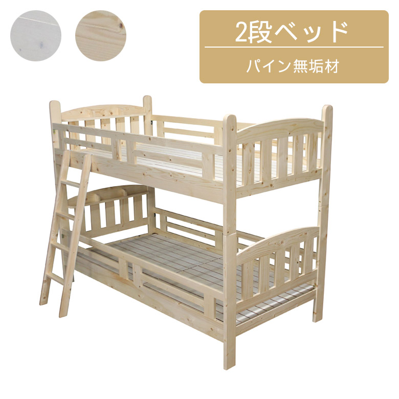 2段ベッド はしご付き 宮棚付き 棚 二段ベッド 子供 大人 はしごタイプ 分割 分割可能 シングルベッド 安心設計 天然木 パイン無垢 無垢材 ラッカー塗装