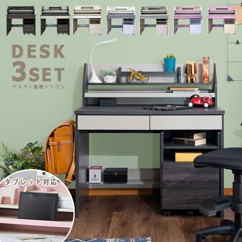 学習机 勉強机 デスクセット 3点セット コンパクト 学習机セット 移動棚付き シンプル 木製 子供 学習デスク 子供用 子供部屋 白 ホワイト