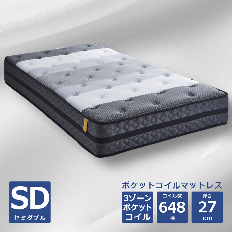 マットレス セミダブルマットレス ポケットコイル 厚み27cm セミダブル ポケットコイル 3ゾーン 3ゾーンポケットコイル