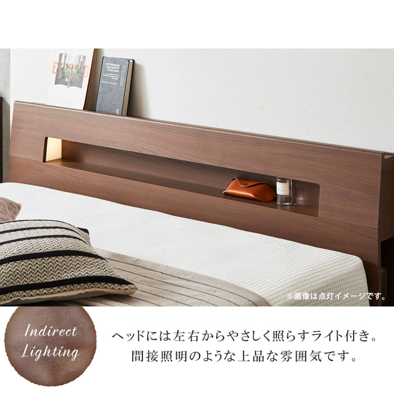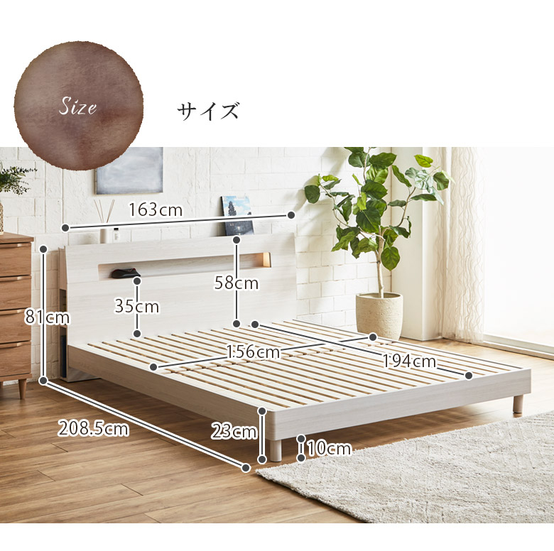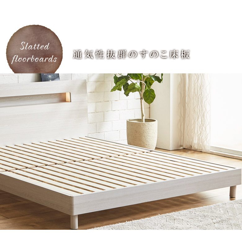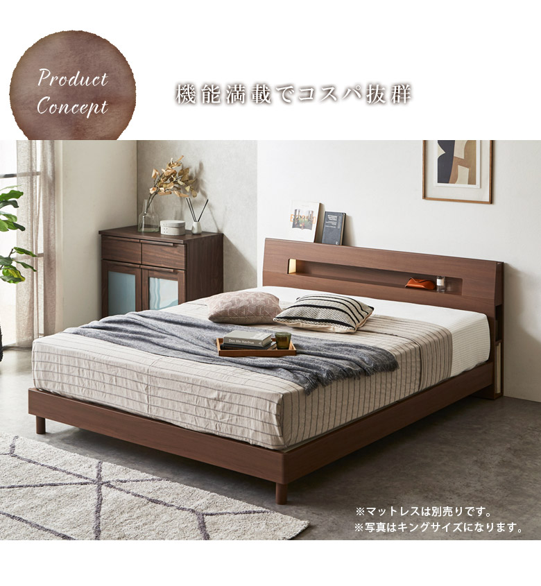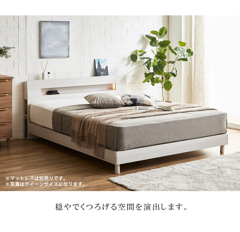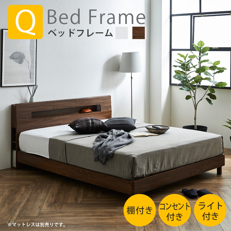 ベッド クイーンベッド 収納 宮付き 棚付き コンセント すのこ床板 ベッドフレーム おしゃれ フレームのみ ライト 照明 ホワイト ブラウン