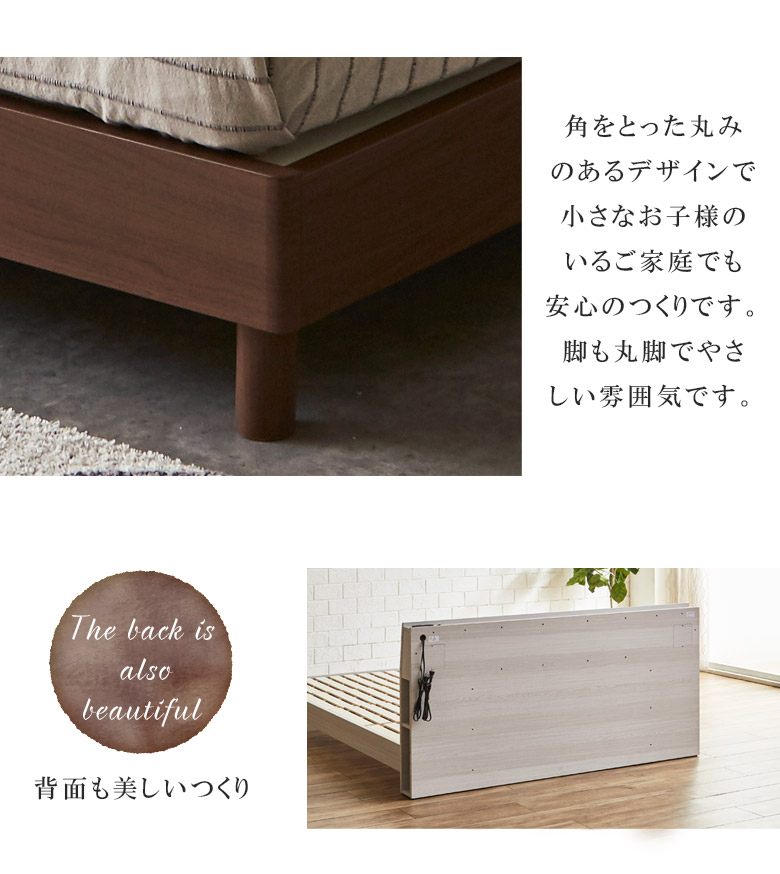 ベッド おしゃれ 宮付き 棚付き クイーンサイズ ベッド