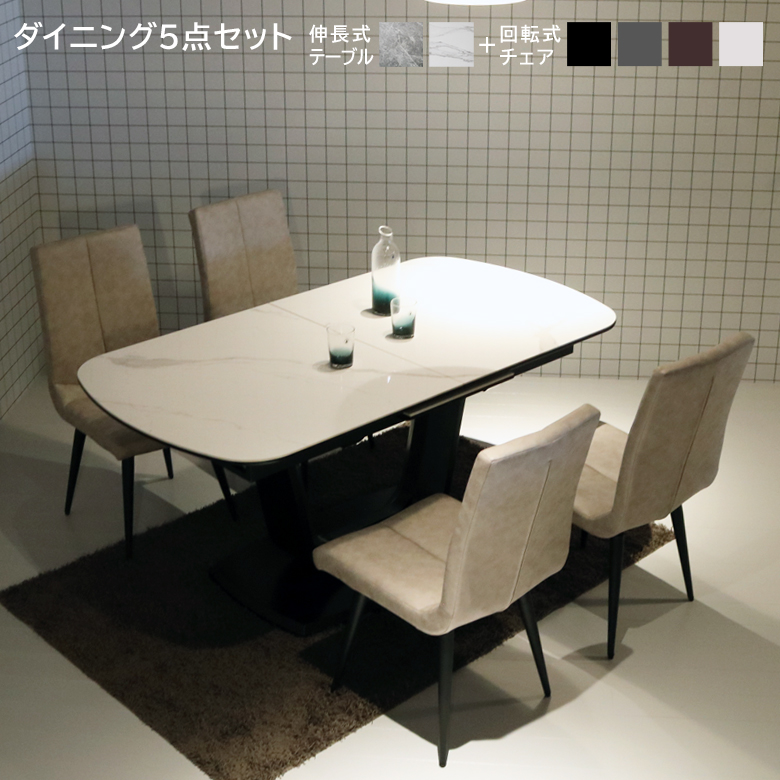 ダイニングテーブルセット 4人 5点セット おしゃれ 160 200 ハイバックチェア 伸長式テーブル 回転式 チェア ダイニングセット 北欧 椅子 高級 4人掛け
