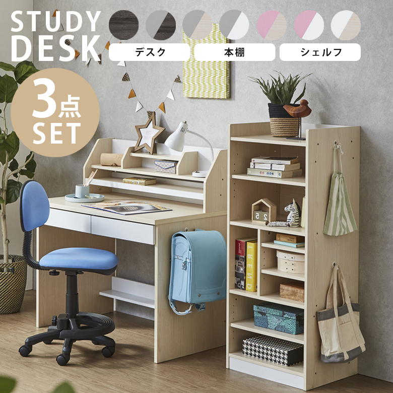 学習机 デスクセット 3点セット 収納 学習デスク 引出し付き 勉強机 シェルフ セット コンパクト 木製 子供 子供用 子供部屋 学習デスクセット 足元収納