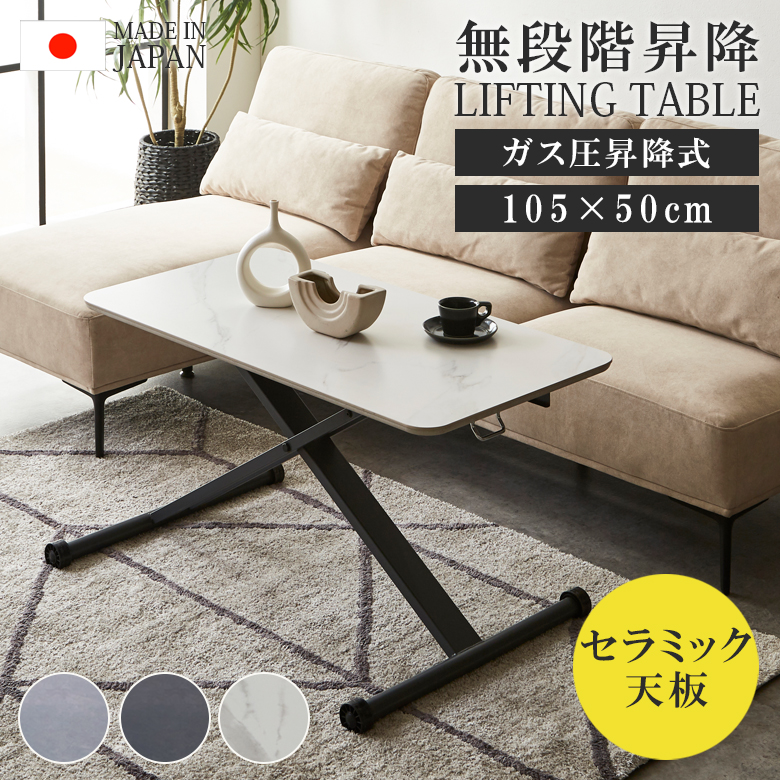テーブル 2人用 昇降式 セラミック ローテーブル センターテーブル 幅105 リフティングテーブル おしゃれ 高さ調節 ガス圧 高さ調整 デスク