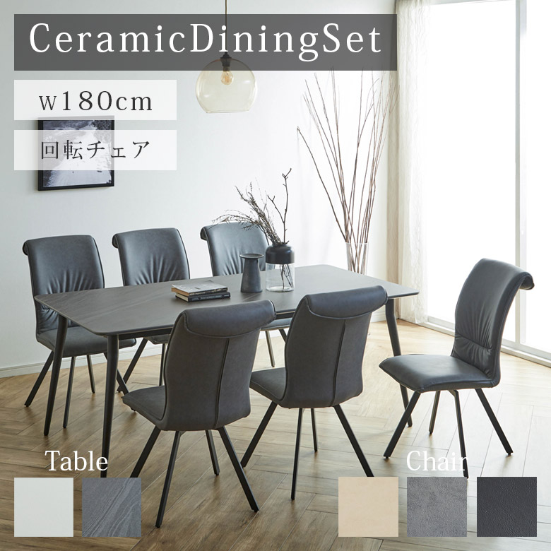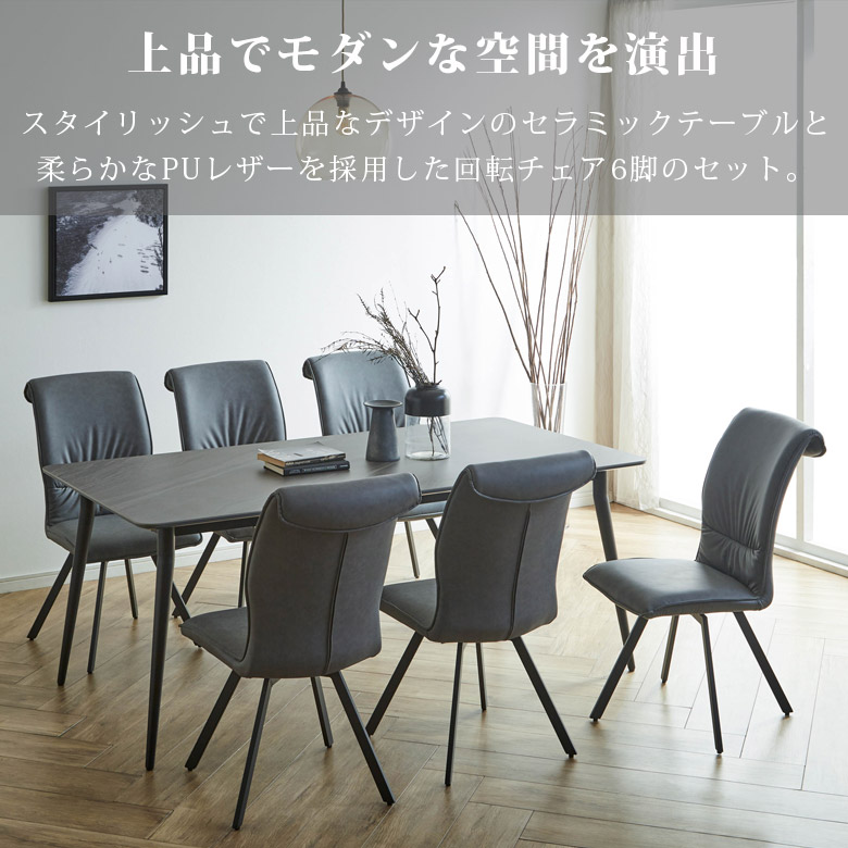 ダイニングテーブルセット 6人掛け セラミックテーブル 回転椅子 7点セット 幅180cm 長方形 モダン おしゃれ 北欧 セラミック テーブル ダイニングチェア 6脚