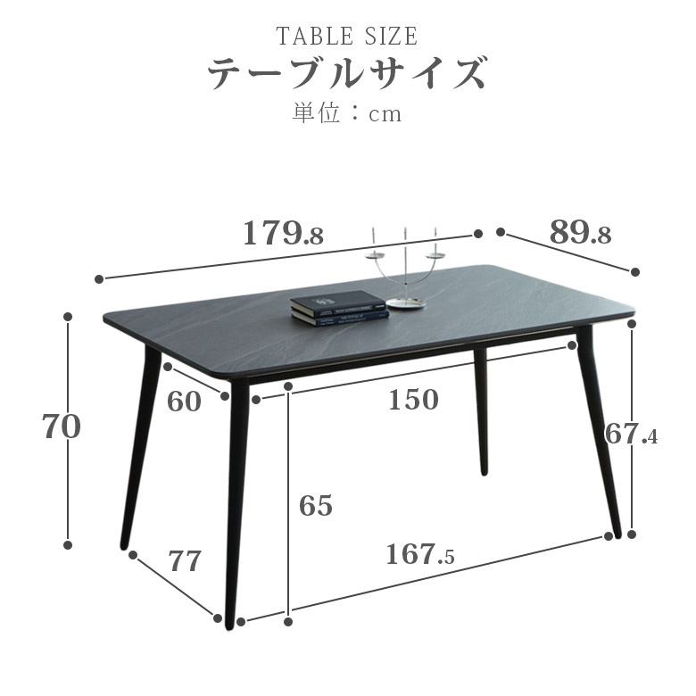 外寸:幅179.8cm×奥行89.8cm×高さ70cm、天板まで:高さ67.4cm
