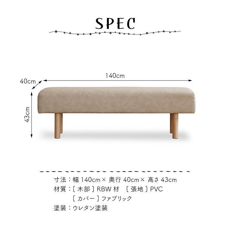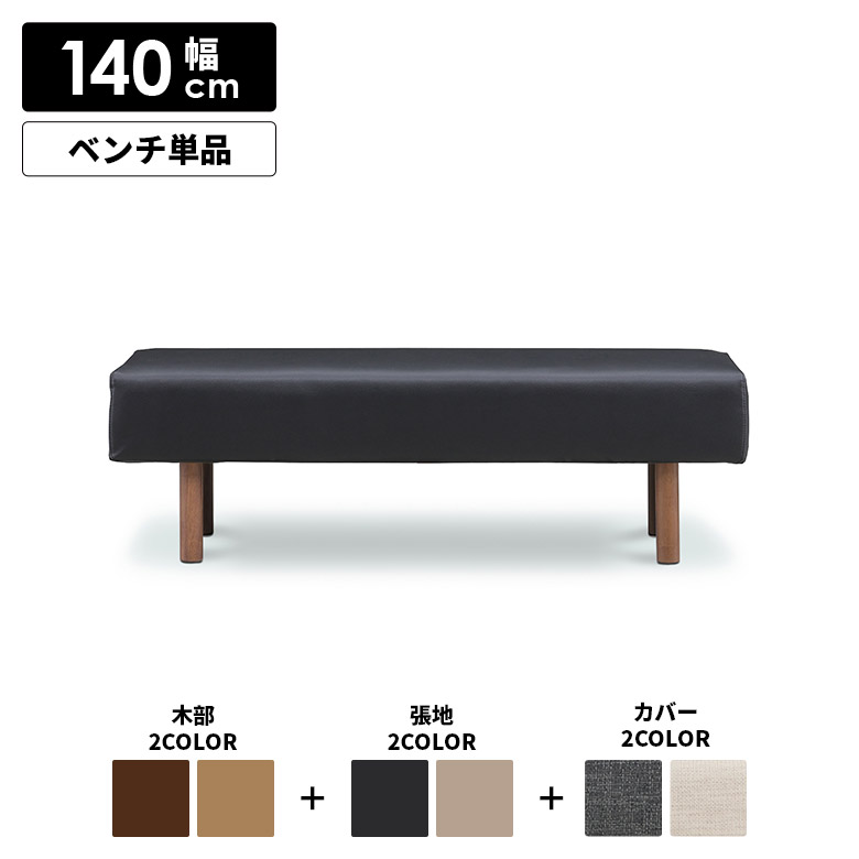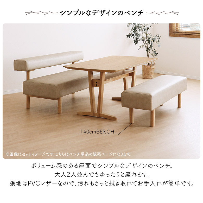 ダイニングベンチ 2人掛け 単品 長椅子 木製ベンチ 幅140cm 背もたれなし 2人用 シンプル 木製 合皮 PVC カバー付き