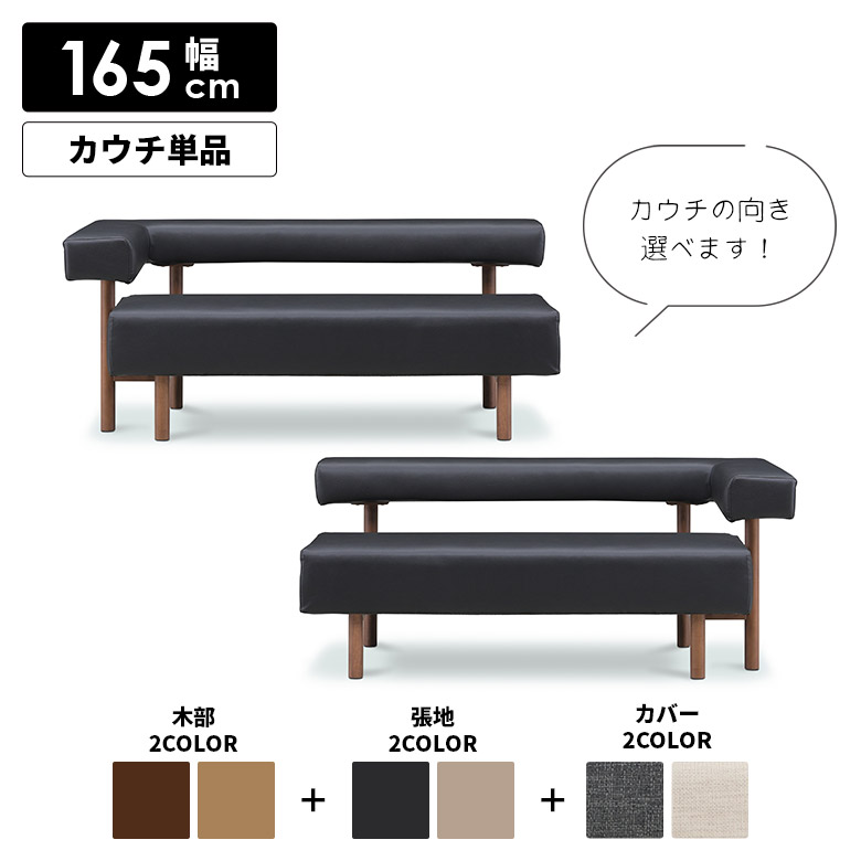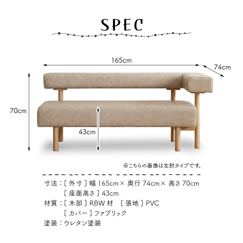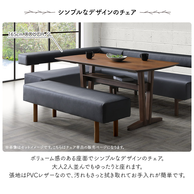 ダイニングベンチ 木製ベンチ 幅165cm 背もたれ付き 片肘 カウチ コーナー L字 2人用 おしゃれ 北欧 木製 合皮 PVC カバー付き