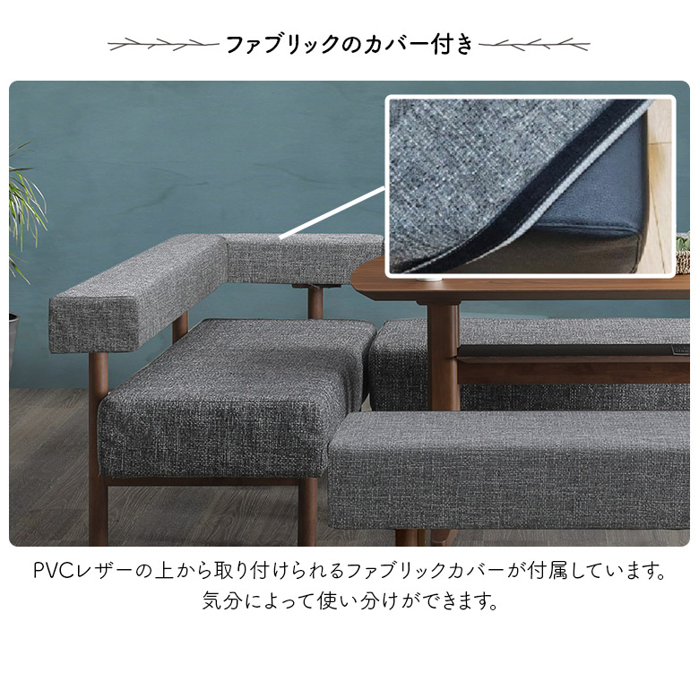 PVCレザーの上から取り付けられるファブリックカバーが付属しています。