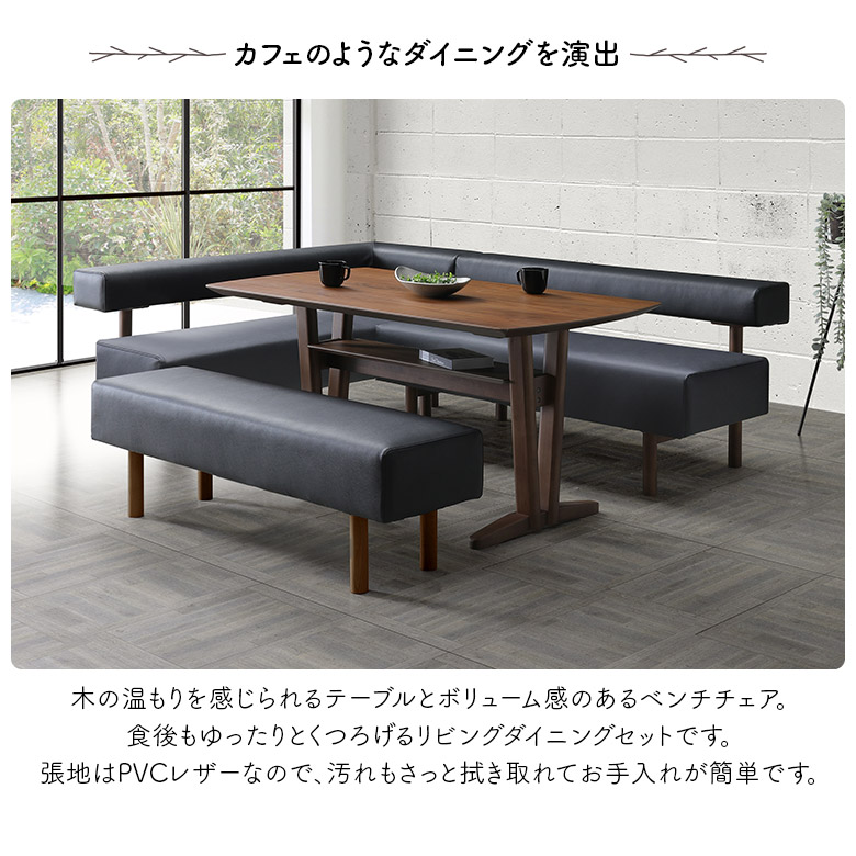 リビングダイニングセット ダイニングテーブルセット 木製 コーナー L字 150cm 5人掛け 6人掛け カフェ風 北欧 おしゃれ