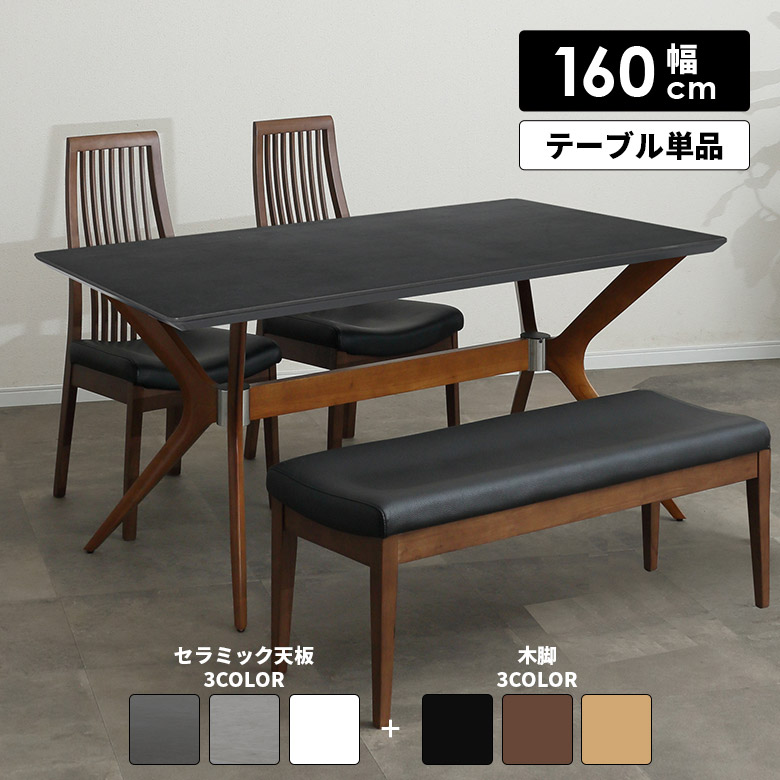 ダイニングテーブル テーブルのみ 幅160cm 4人掛け 長方形 北欧 シンプル モダン おしゃれ セラミック天板 木脚