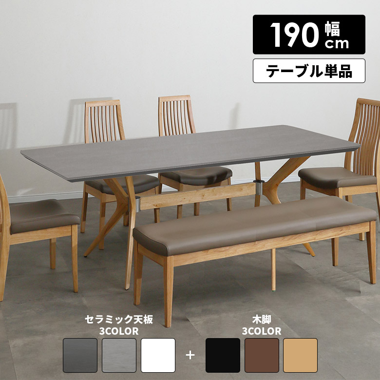 食卓テーブル ダイニングテーブル 単品 幅190cm 4人掛け 5人掛け 6人掛け 北欧 おしゃれ セラミック天板 木脚
