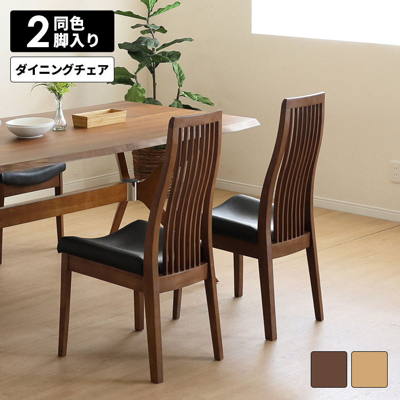 ダイニングチェア 2脚セット ハイバックチェア 木製チェア 北欧 おしゃれ シンプル モダン ブラウン ナチュラル 格子 PVC 合皮