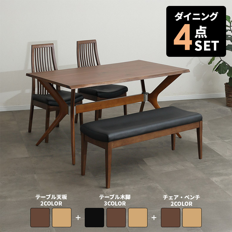 ダイニングテーブルセット 幅160cm 4人掛け ダイニングベンチ 110cm ダイニングチェア 2脚セット 木製 ホワイトオーク
