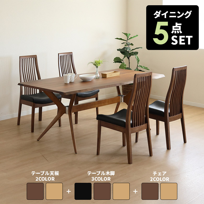 ダイニングテーブルセット 4人掛け 幅190cm ホワイトオーク 木製 木脚 ナチュラル ブラウン ダイニングチェア 4脚セット