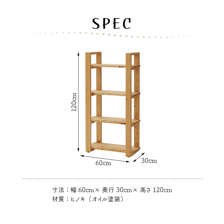 オープンラック オープンシェルフ 幅60cm 高さ120cm 木製 天然木 ヒノキ ひのき オイル塗装 ナチュラル 北欧 おしゃれ
