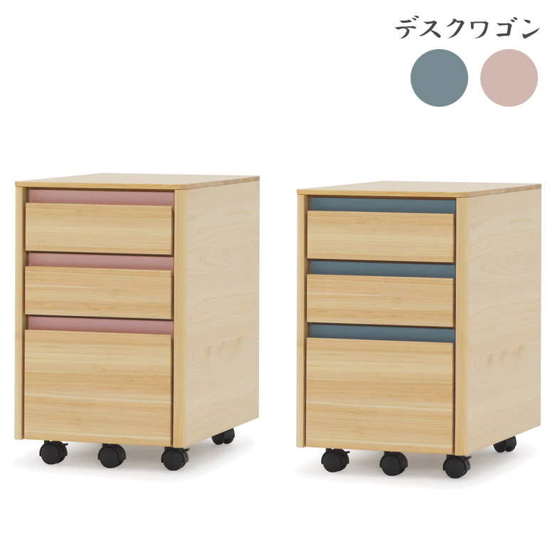 爆買 デスクワゴン 幅35 サイドワゴン キャスター付き 3段 引出し デスクチェスト ひのき材 無垢材 突板 フルオープンスライドレール