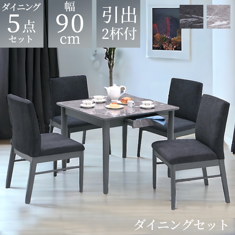 ダイニングテーブルセット 5点セット 4人掛け おしゃれ 幅90 ダイニングセット 石目調 チェア4脚 引出し付き