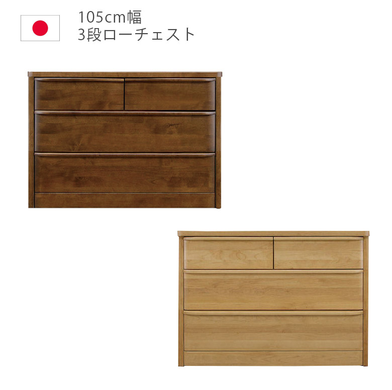 ローチェスト チェスト 幅105cm 3段 完成品 木製 木製チェスト おしゃれ 105 タンス たんす 洋服 収納 北欧 木製収納 国産 大川家具 アルダー 箱組