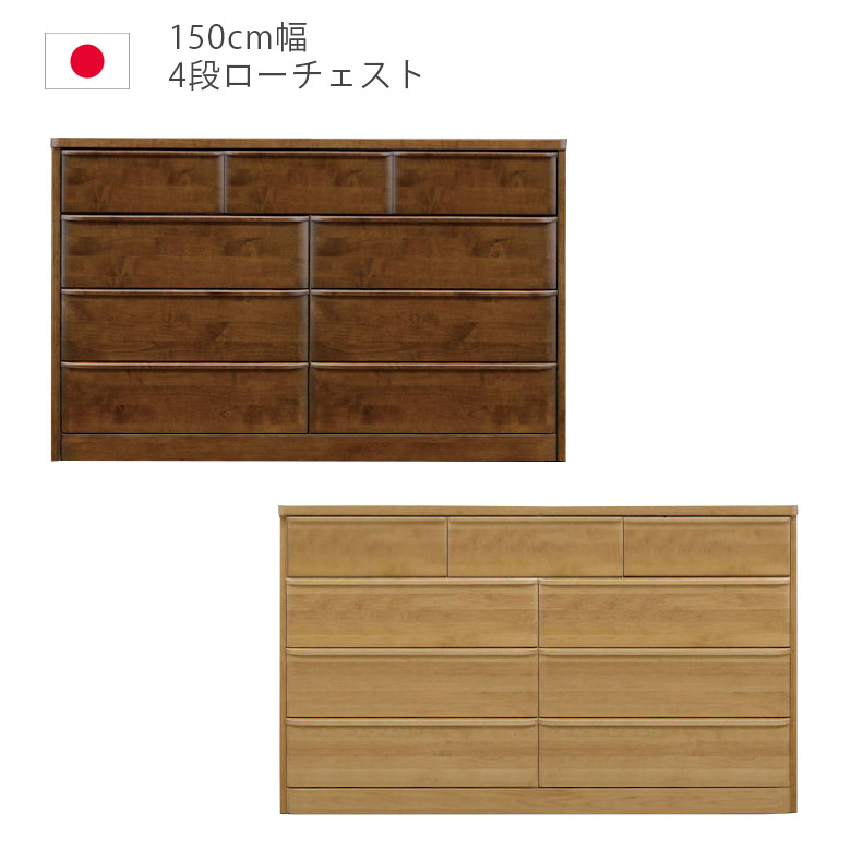 ローチェスト 幅150cm チェスト 4段 完成品 収納 北欧 おしゃれ 木製 150 タンス 洋服 たんす 木製チェスト 木製収納 国産 大川家具 アルダー 箱組