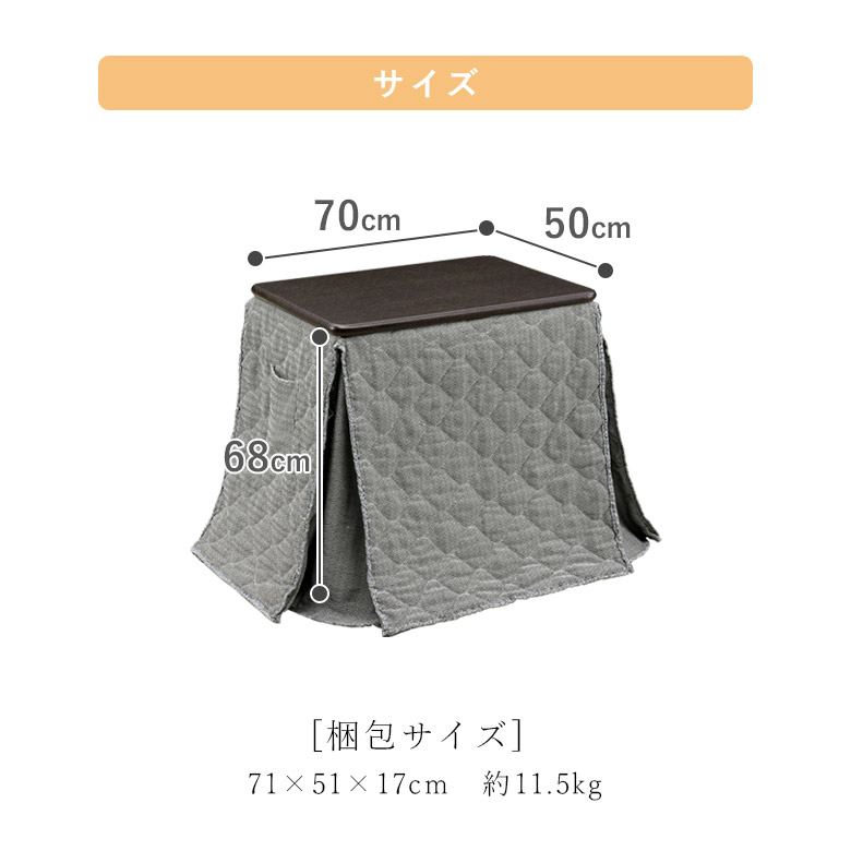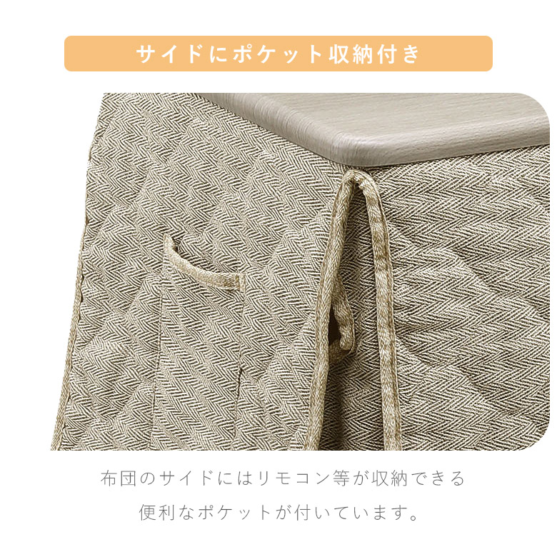 届いてすぐに使えるこたつテーブルと布団のセット。