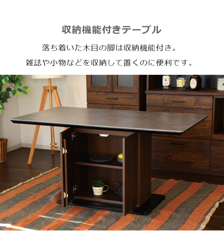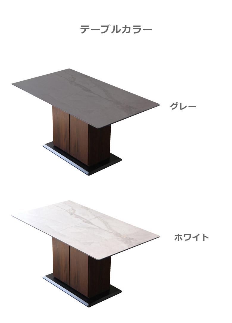 シンプルでキズに強いセラミック天板を使用したダイニング5点セット 自分の好みに合わせてテーブル2色・チェア2色の4通りから選択可能 テーブル下は扉収納になっており収納も可能