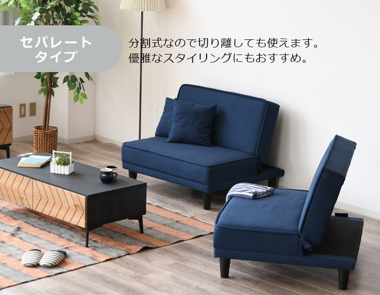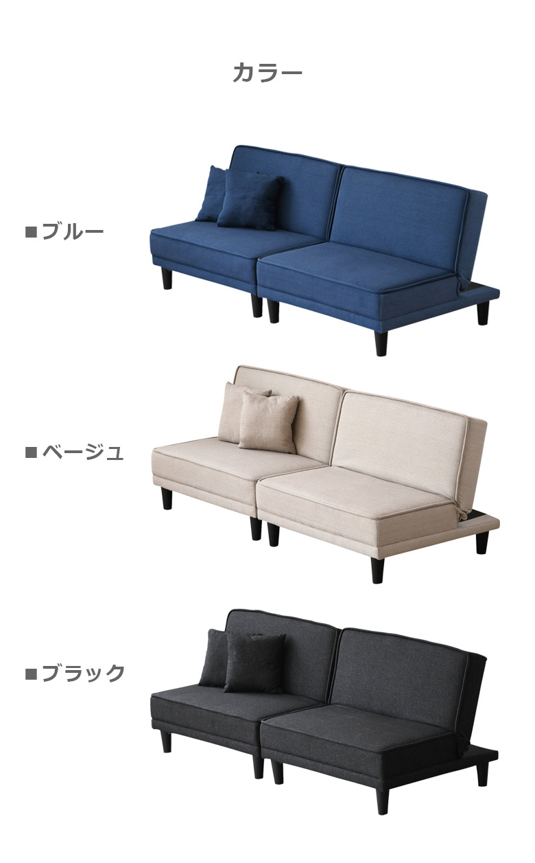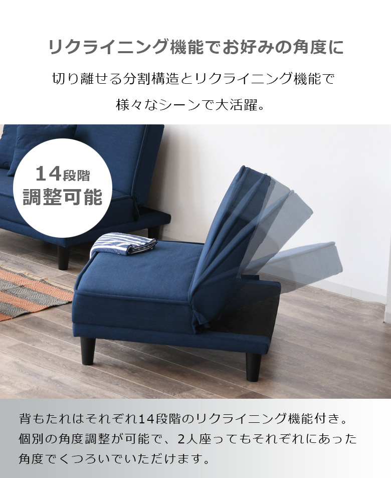 ソファー ソファ ソファベッド 2人掛け 幅180cm 2人掛けソファ 3WAY セパレート 背もたれ リクライニング