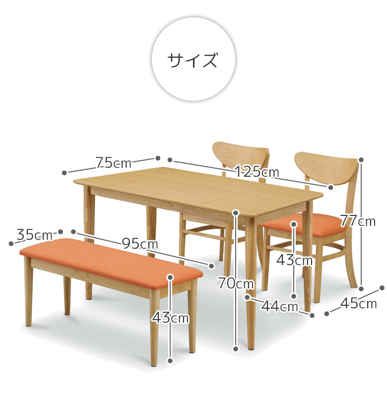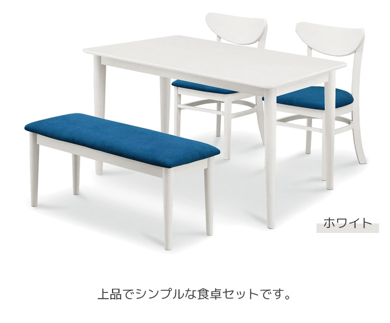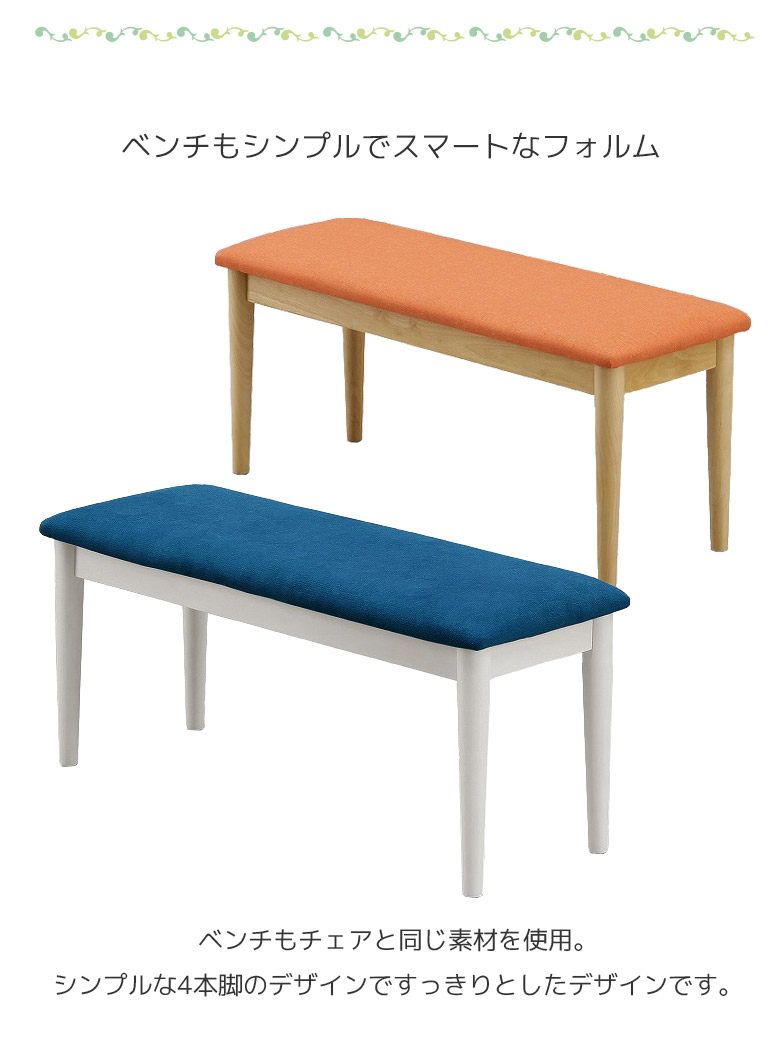 ダイニングテーブルセット 4点セット テーブル 幅125 ダイニング 4人掛け ベンチ チェア2脚 4人用 天然木 オーク ラバーウッド タモ 丸脚 ファブリック