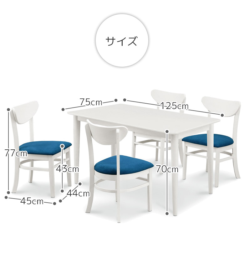 チェア:幅44cm×奥行45cm×高さ77cm、座面までの高さ:43cm