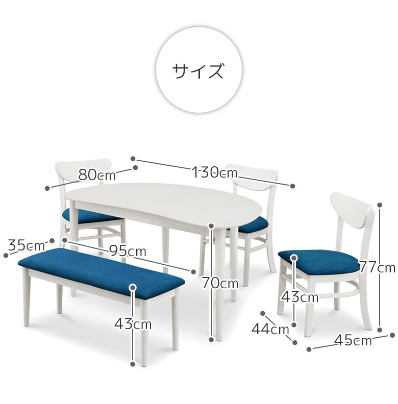 チェア:幅44cm×奥行45cm×高さ77cm、座面までの高さ:43cm