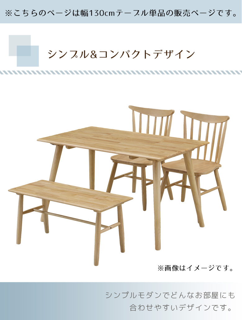 ダイニングテーブル 4人掛け 長方形 130cm幅 おしゃれ シンプル 幅130 ラバーウッド無垢材 テーブル カントリー風 ダイニング