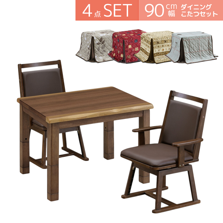 爆買 イニングこたつ 2人用 4点セット 幅90cm こたつテーブル 高さ調節 セット こたつ ダイニングこたつ こたつセット コタツ 暖卓 コタツセット こたつふとん
