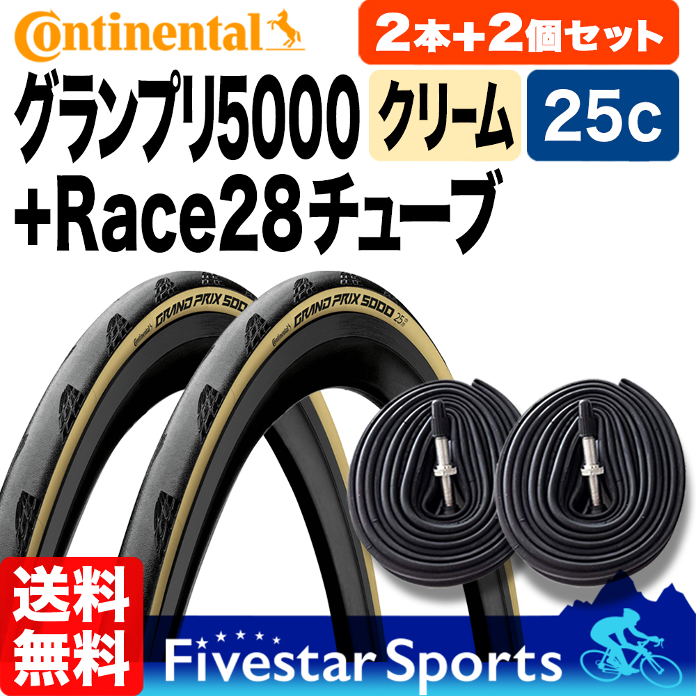 タイヤ 2本 チューブ 2個セット GP5000 クリーム 700 x 25c + Race28 チューブ ロードバイク グランプリ 5000 コンチネンタル GRAND PRIX クリンチャー