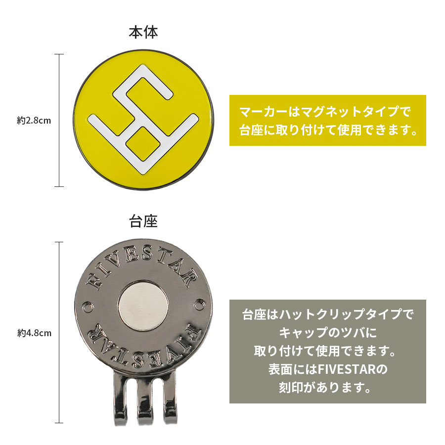 マーカー ゴルフ マグネット ハットクリップ キャップクリップ 磁石 ゴルフ用品 シンプル おしゃれ ファイブスター