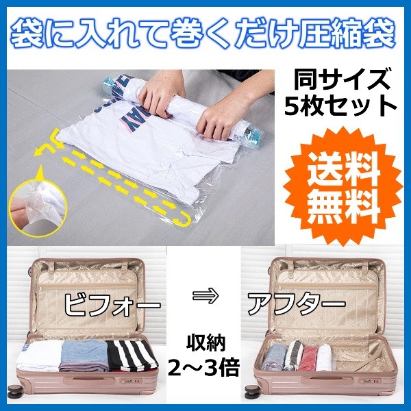 圧縮袋 手巻き式 衣類 旅行 掃除機不要 ポンプ不要 圧縮パック 旅行用 収納 トラベル 大きい 小さい 衣替え 同サイズ 5枚セット