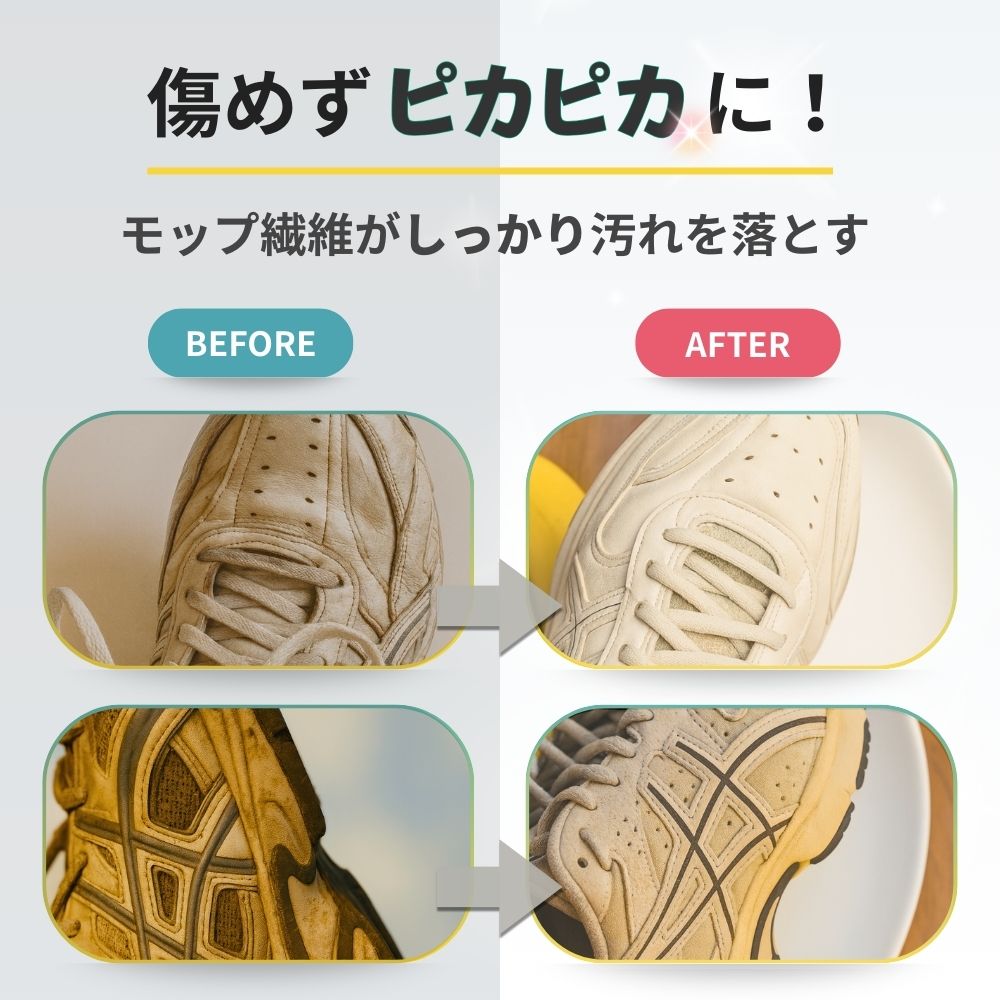 内側のマイクロファイバー(シェニール繊維)が汚れを落とし、靴を傷めずにキレイに仕上げます。