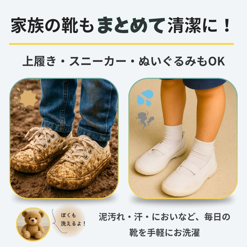 上履き・スニーカー・ぬいぐるみなど、毎日使うアイテムをまとめて清潔に保てます。