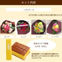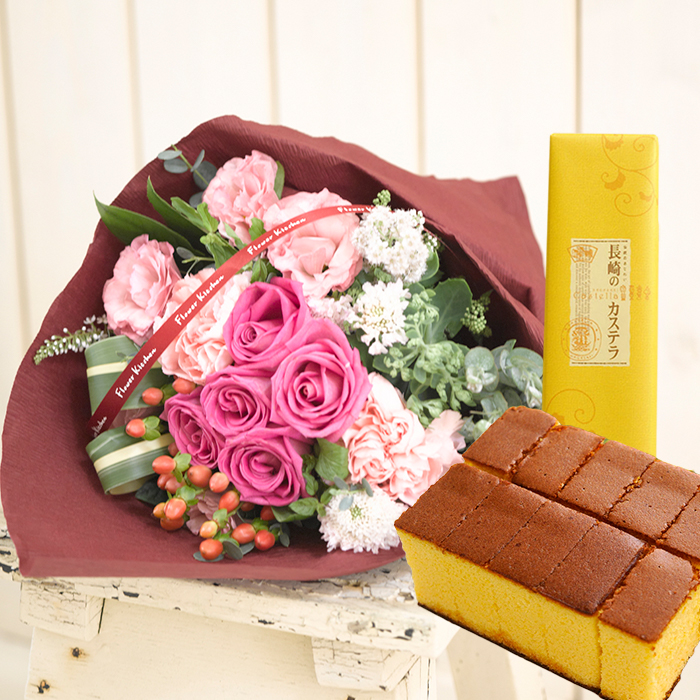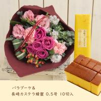 花とスイーツのセット バラブーケ と 長崎カステラ蜂蜜 0.5号 10切入 誕生日 記念日 お祝い花 即日発送 あすつく プレゼント お取り寄せ FKAA