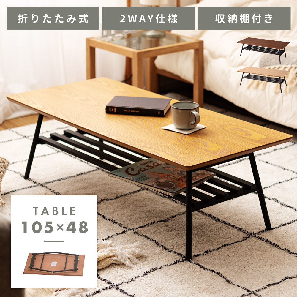 センターテーブル ローテーブル 折りたたみ 木製 長方形 おしゃれ 折りたたみテーブル 幅105cm 一人暮らし 1人暮らし コンパクト テーブル 机 シンプル ウォルナット オーク ブラウン ナチュラル リモートワーク 在宅勤務 在宅ワーク