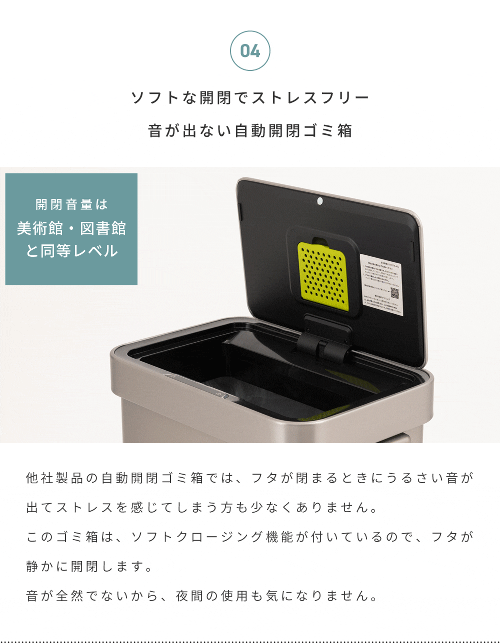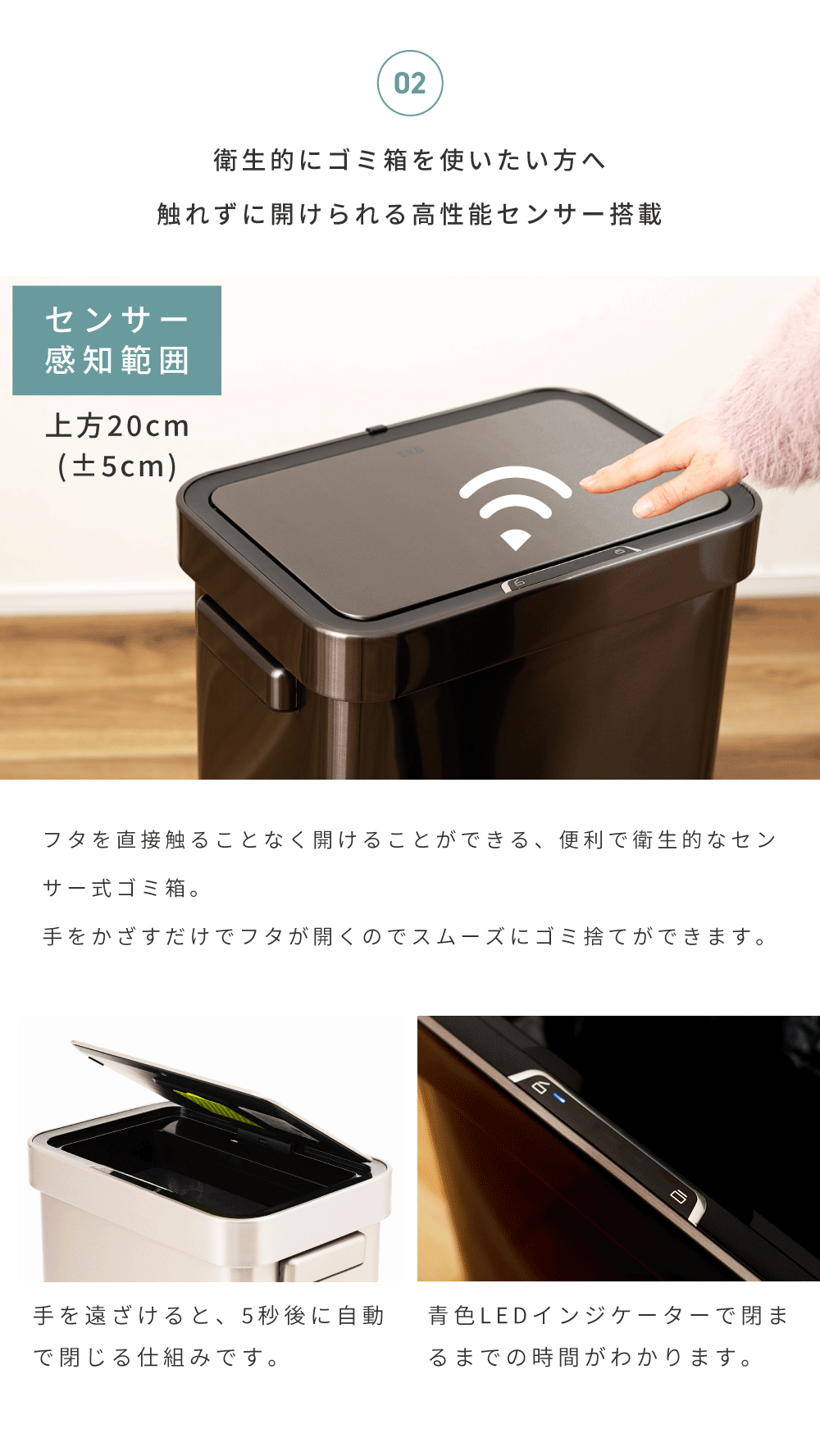 ●衛生的にゴミ箱を使いたい方へ触れずに開けられる高性能センサー搭載