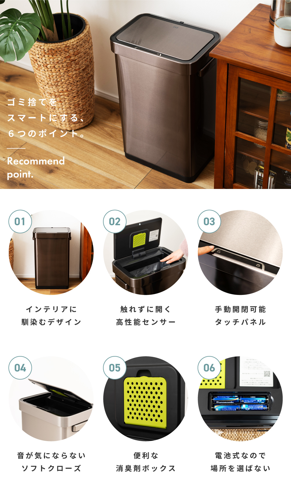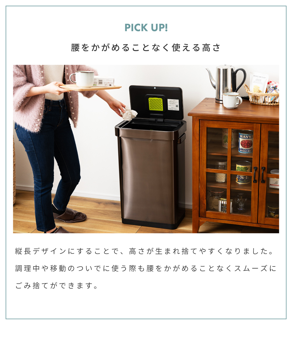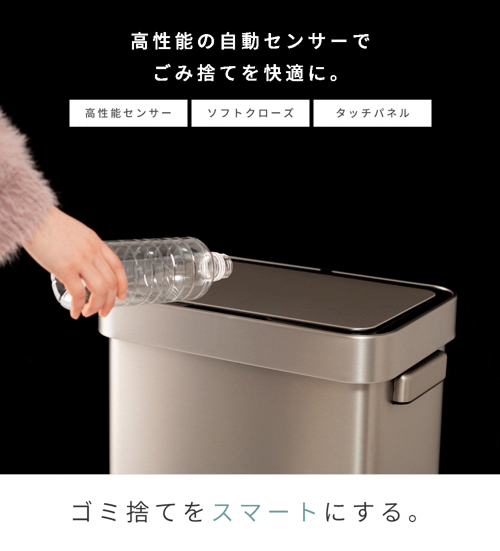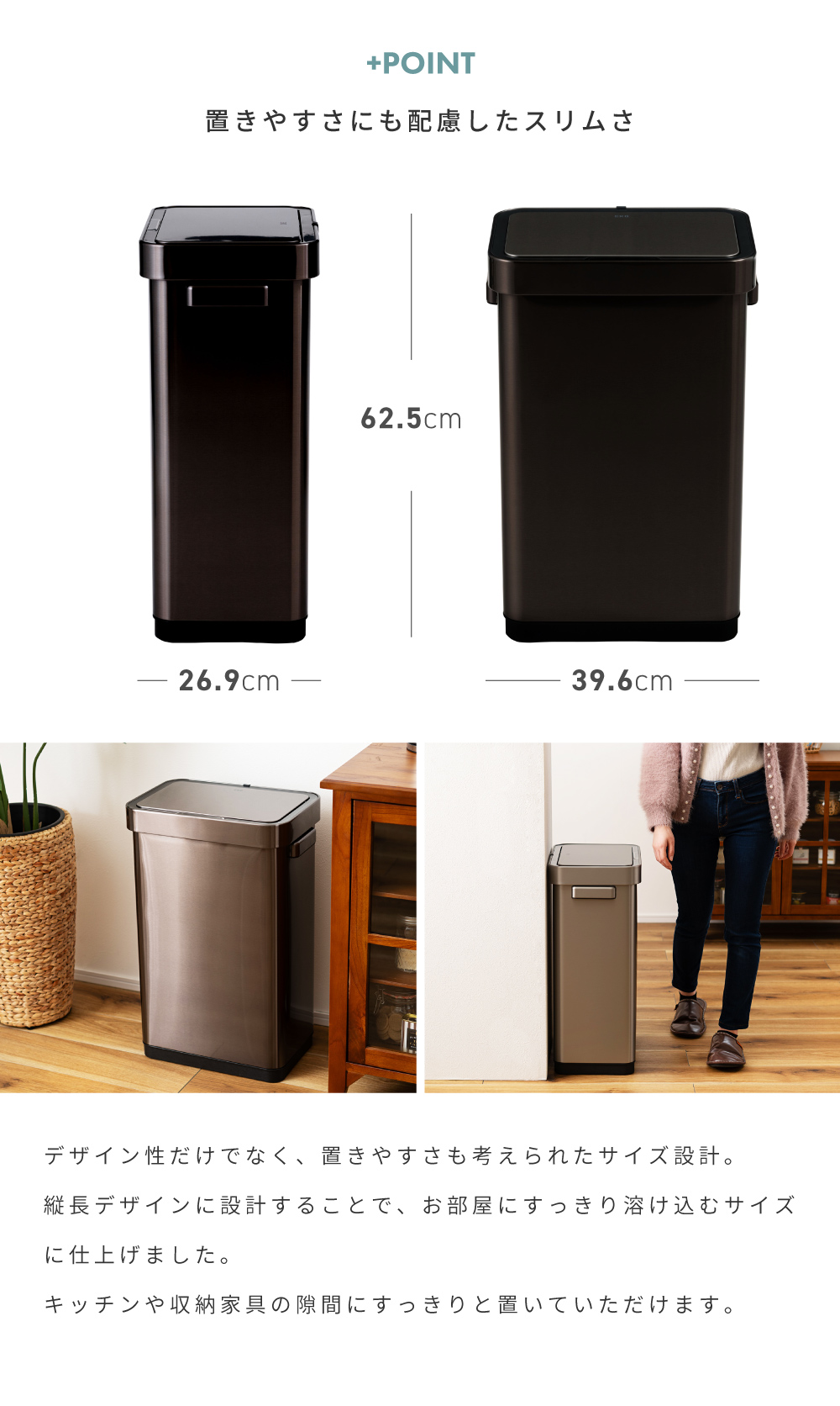 ●スリムなデザインで空間を有効活用家事導線を邪魔しない自動開閉ゴミ箱