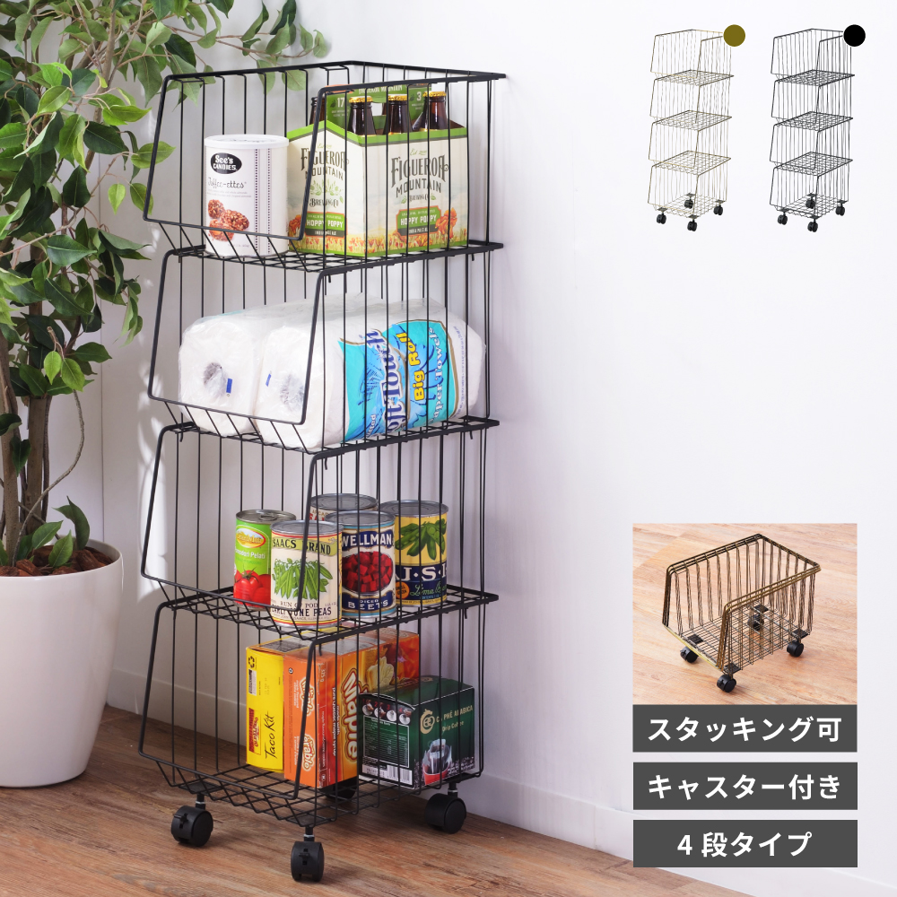 ●衣類や雑誌などを入れるのに最適な、積み重ねできるバスケットワゴン。