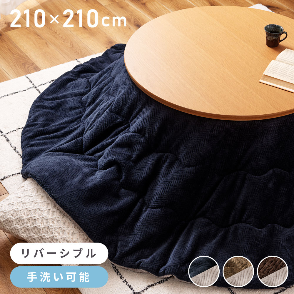 こたつ布団 円形 おしゃれ 210×210 ヘリンボーン 防寒 リバーシブル こたつ用品 こたつ掛け布団 コタツ布団 コタツ 起毛生地